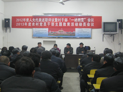 12月22日下午,中垾鎮建華村組織召開了2012年度人大代表述職評議暨村干部“一述四定”會議。全體黨員和部分村民代表參加了會議。中垾鎮副鎮長李德龍、人大副主席潘松、組織委員陳秀梅一行出席了會議。會議由組織委員陳秀梅同志主持。會議有以下幾項內容: