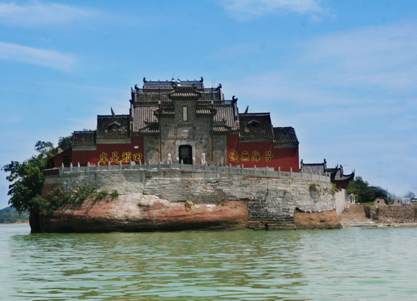 中廟坐落在五大淡水湖,巢湖北岸延伸湖面百米的巨石磯上。石磯呈朱砂色,突入湖中,形似飛鳳,通稱鳳凰臺(tái)。古廟坐北朝南,橫峙湖岸,凌空映波,殿高壓云。廟門上有“巢湖中廟”書刻。整個(gè)廟宇樓閣重檐飛出,似丹鳳之冠,在晚霞的照射下,燦燦生輝。中廟現(xiàn)供奉關(guān)羽、觀音和諸神。據(jù)傳原奉還有泰山玉女、巢湖焦姥。原中國(guó)佛教協(xié)會(huì)會(huì)長(zhǎng)趙樸初曾盛贊中廟“湖天第一勝境”。