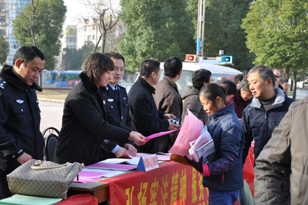 12月3日該院接巢湖市委宣傳部文件后院領(lǐng)導(dǎo)非常重視,當(dāng)即批示由控申部門牽頭,相關(guān)科室配合搞好此次宣傳活動(dòng)。控申部門根據(jù)文件要求當(dāng)天即做好橫幅、咨詢臺(tái),準(zhǔn)備了宣傳材料,聯(lián)系好相關(guān)科室參加人員,落實(shí)了第二天所需的桌椅等。12月4日一大早,巢湖市檢察院控申科會(huì)同預(yù)防、反貪等部門干警,來到巢湖市西苑廣場(chǎng),與參加宣傳活動(dòng)的各單位一起緊張地忙碌著,拉橫幅、豎展板、擺展位、向行人散發(fā)宣傳材料,一切都在有序地進(jìn)行。不一會(huì),西苑廣場(chǎng)就開始變得熱鬧起來,越來越多的人聚集在各宣傳點(diǎn),許多過往群眾紛紛駐足觀看,或索要宣傳材料,咨詢相關(guān)問題;或到展板前觀看宣傳圖片,認(rèn)真學(xué)習(xí)相關(guān)知識(shí)。面對(duì)過往群眾,該院干警熱情主動(dòng)地向他們介紹此次活動(dòng)的內(nèi)容,并散發(fā)《安徽省預(yù)防職務(wù)犯罪工作條例》、《職務(wù)犯罪常見罪名及相關(guān)法律規(guī)定》、《密碼舉報(bào)工作制度》及網(wǎng)絡(luò)舉報(bào)等宣傳材料,宣傳檢察機(jī)關(guān)在反腐敗工作中的職責(zé)、制度、以及案件受理范圍和辦案程序等,并就群眾提出的問題一一進(jìn)行耐心解答。當(dāng)天共發(fā)放宣傳資料1000余份,解答法律咨詢20余次,既營(yíng)造了濃厚的法制宣傳氛圍,又受到廣大群眾的一致好評(píng)。