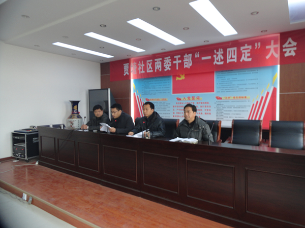 會上,各考核組組長首先就社區(村) “一述四定”等述職評議工作做動員講話,然后由業務人員宣讀街道2012年度社區(村)領導班子、兩委干部考核、社區(村)干部“一述四定”等述職評議工作實施意見,同時就表格填寫進行說明,隨后兩委班子成員在會上進行了述職。