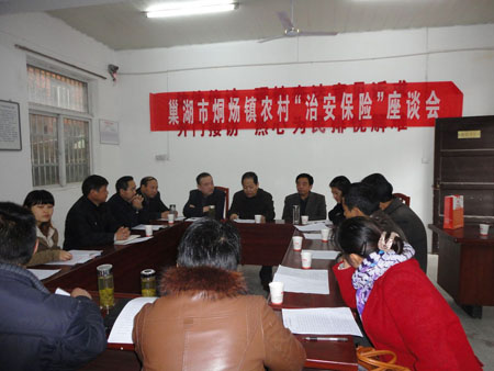為貫徹落實省、市關于開展農村治安保險的工作部署,加強基層治安防控網絡建設,深入推進農村社會管理創新,維護農村社會的持續穩定,近日,巢湖市綜治辦、烔煬鎮政府和人保財險巢湖分公司在烔煬鎮召開了農村“治安保險”工作座談會,鎮農保所、部分村干部和群眾代表出席了會議。