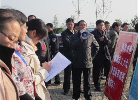 烔煬鎮黨委副書記、鎮長吳明哲、副鎮長高道軍陪同視察。(李祥)