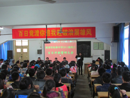 百日沖刺誓師大會在全體師生鏗鏘有力的集體宣誓中圓滿結束。這次誓師大會大會,似春雷,振奮人心;似戰鼓,催人奮進。相信我們高三全體師生,經過百日的沖刺、拼搏,柘皋中學2013年高考一定會奪取新的佳績,再創新的輝煌。(張金林)