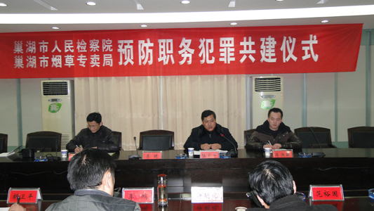 啟動儀式由檢察院黨組成員、反貪局長陸家平主持。巢湖市煙草專賣局紀檢組長胡衛平代表雙方宣讀了“關于共同開展預防職務犯罪工作的意見”,該《意見》對成立檢煙共建預防職務犯罪工作指導小組,建立聯席會議制度和預防工作機制,加大重點項目專項預防力度,以及加強檢煙合作、形成預防工作合力等方面作出了明確規定。隨后預防科負責人張忠志介紹了2012年巢湖院預防職務犯罪工作的開展情況。
