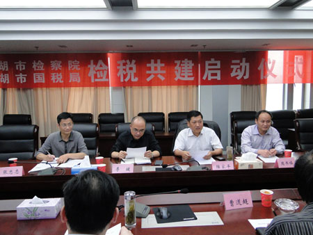 為從源頭上與治本上做好職務犯罪預防工作,建立預防職務犯罪防線,提高稅務人員拒腐防變的自覺性與防范職務犯罪的能力,5月30日下午巢湖市檢察院與巢湖市國稅局舉辦了“檢稅廉政共建啟動儀式” ,共商預防措施和對策。檢察院檢察長李健、副檢察長陸家平和國稅局局長朱才群及部分黨組成員出席了啟動儀式,檢、稅兩家相關部門負責人參加了本次儀式。啟動儀式由陸家平主持,首先由國稅局監察室主任張克平宣讀了《關于在國稅系統進一步共同開展預防職務犯罪工作的意見》。檢察院預防科負責人張忠志通報了2012年以來巢湖市預防職務犯罪工作的具體開展情況。