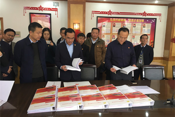 在遠教站點室,考察團翻閱了富煌集團黨建檔案以及電教遠教等軟件資料臺帳,并詳細咨詢了解集團黨建工作模式、黨建工作人員配備、工作制度和運行機制等相關情況,并對富煌集團扎實推進非公企業黨建工作舉措表示贊賞。