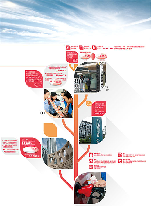 火熱的自貿(mào)區(qū),只是十八大以來(lái)中國(guó)經(jīng)濟(jì)新一輪改革的縮影。全國(guó)鐵路貨運(yùn)從計(jì)劃全面走向市場(chǎng),央行全面放開(kāi)貸款利率管制……各項(xiàng)改革都在穩(wěn)步推進(jìn)。