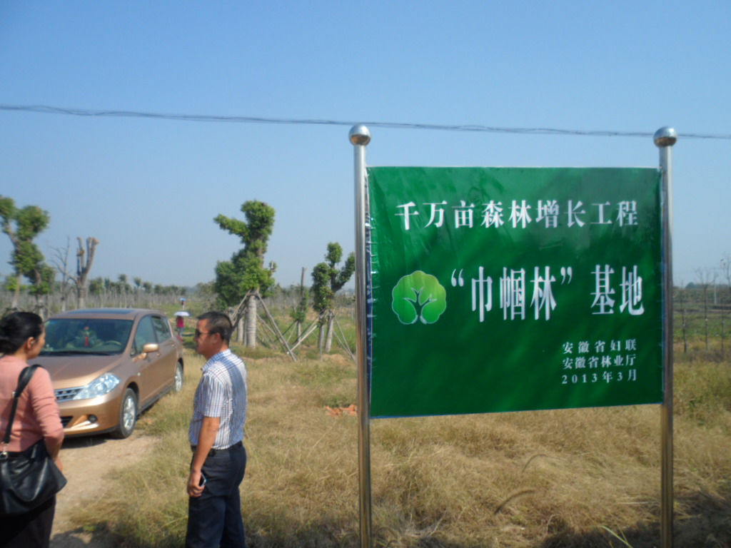 2013年,巢湖市重點建設5個“巾幗林”基地,其中有2個是省級基地,分別在烔煬鎮、壩鎮、夏閣鎮、欄桿集鎮、中廟街道。截止目前為止:基地總投資1800多萬元,完成造林面積4151畝,占計劃任務100%,植樹65萬余株,主要樹種是經濟苗木和花卉苗木類,帶動了周邊392個農戶、376名婦女參與造林綠化和就業。