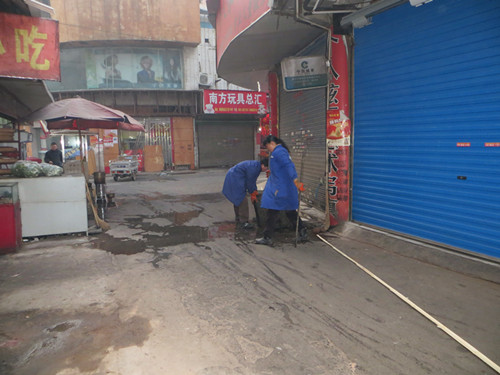 社區得知這一情況后,立即向街道創建辦匯報并聯系了環衛處。,為了讓居民和經營戶們早日擺脫又臭又臟環境下的困擾,過一個舒心的春節,1月22日上午,社區工作人員以及環衛處專業疏通人員,對南巢商業街一街幾個堵塞的窨井下水管道進行了疏通,經過一個多小時的努力終于使影響居民和經營戶居住經營的環境衛生問題及時得到了解決。